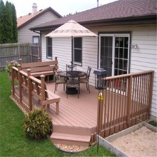 塑木地板戶外庭院設(shè)計(jì)改造室外露臺(tái)陽臺(tái)地面實(shí)木拼接防腐木塑地板 拉瑞斯戶外塑木護(hù)欄景觀河道圍欄公園棧道木塑扶手欄桿防腐木柵欄